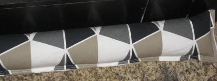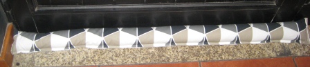 Com o frio que está é necessário preservar o calor dentro de casa. Fiz um rolo para a porta para evitar a corrente de ar que entra por baixo da porta. Para encher usei areia dos gatos, pois nesta altura do ano é algo que está seco.